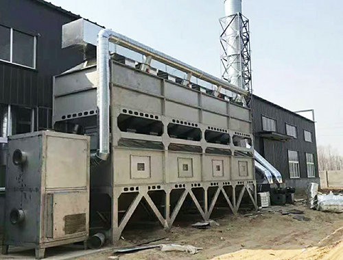 在化學反應過程中,利用催化劑降低燃燒溫度,加速有毒有害氣體完全氧化的方法,叫做催化燃燒法。由于催化劑的載體是由多孔材料制作的,具有較大的比表面積和合適的孔徑,當加熱到300~450℃的有機氣體通過催化層時,氧和有機氣體被吸附在多孔材料表層的催化劑上,增加了氧和有機氣體接觸碰撞的機會,提高了活性,使有機氣體與氧產生劇烈的化學反應而生成CO2和H2O,同時產生熱量,從而使得有機氣體變成無毒無害氣體。