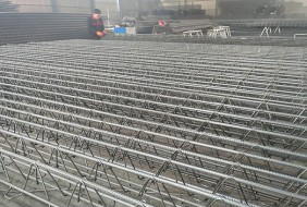 PC桁架在可拆卸鋼筋桁架樓承板的應用??刹鹦朵摻铊旒軜浅邪灏ǖ啄:椭苯卿摻铊旒?;每條鋼筋桁架分別通過位于一排的多個連接扣和底模連接;連接扣上部開設有矩形槽,矩形槽的側面對應開設有卡槽,鋼筋桁架的兩下弦鋼筋分別卡設在連接扣的兩卡槽內,連接扣通過緊固件與底模固定連接。由于連接扣對應設置有兩個卡槽,兩下弦鋼筋卡設在同一連接扣的兩卡槽內,在混凝土重力作用下,兩下弦鋼筋雖然形成大小相同、方向相反的兩個推力,但對于每個連接扣來說,同時作用其上的大小相同、方向相反的兩個推力相互抵消,因此,這兩個推力不會通過連接扣傳遞到底模上而使底模產生拉伸變形,也不會使連接底模與連接扣的緊固件因承受剪切力而給后續拆卸造成困難。